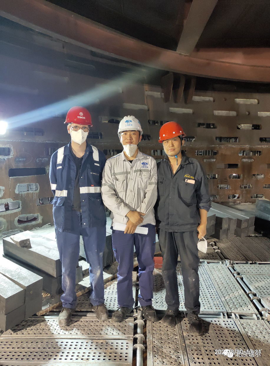 太鋼高爐的陶瓷杯采用的是瑞爾的全球合作伙伴法國圣戈班公司的陶瓷杯壁產(chǎn)品。由于疫情不可抗力因素影響,導(dǎo)致外方的砌筑指導(dǎo)人員無法按照原計劃到達現(xiàn)場提供砌筑技術(shù)服務(wù)。面對這一意外狀況,已經(jīng)合作過多次的瑞爾與圣戈班經(jīng)過協(xié)商,認為瑞爾的技術(shù)人員對圣戈班的產(chǎn)品也已經(jīng)非常了解,因此由瑞爾派出的現(xiàn)場技術(shù)人員完成該產(chǎn)品的砌筑指導(dǎo)工作。最終瑞爾的技術(shù)人員出色地完成了國外陶瓷杯壁產(chǎn)品部分的砌筑指導(dǎo)任務(wù)。